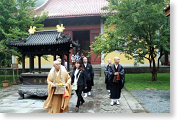 一行下山の際には、雨の中衣斐団長を気遣い戒興師自ら傘を手向けて駐車場まで見送られ、団員一同東福寺御開山聖一国師と現管長福島慶道老師のご功績にも改めて感動し、中には涙する姿も見られました。