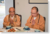 檀信徒一同聖一国師修行の地に参拜できたことに感銘、緊張の面持ちでありましたが昼食の際戒興師が「また日本に伺う機械があるが日本の精進料理は美味しい、それも訪日の楽しみの一つ」と場を和まされ、「嘗て(佛法も伽藍も)隆盛であった頃の径山の復興を目指している、今は在家も対象に坐禅や礼儀作法などを教えながら布教を行なっている」としながら日本仏教徒への協力も呼びかけられました。