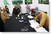 また師は一行を自らの書斎に案内、その場で揮毛し僧職等に贈られ、径山の復興に盡力されている東福寺派管長福島慶道老師への墨跡も団に託けられました。